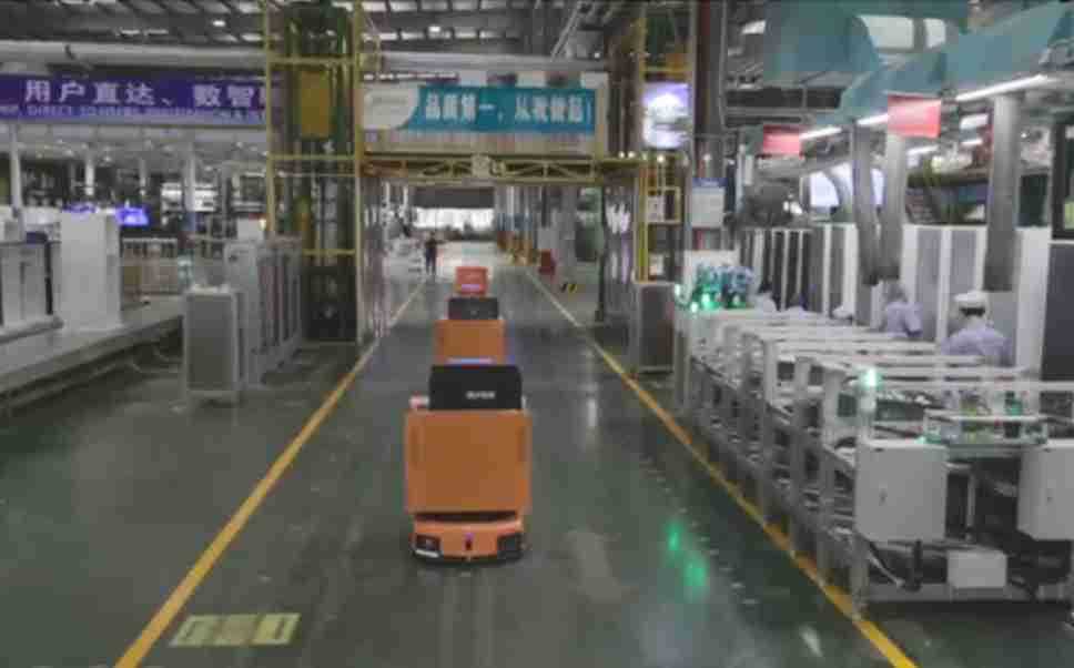 为车载冰箱物流配送打造的智能解决方案,,,包含产中物流通过潜伏举升AMR搬运至线边,,产后成品物流智能仓储,,,流程包含产中物流智能齐套入库,,,线边安灯叫料AMR智能配送至线边,,,成品入库、、出库,,,,通过无人堆高车机器人,,,,智能仓储管理替代人工作业管理,,实现更高存储、、、更高效率、、、更具柔性化的解决方案。。。